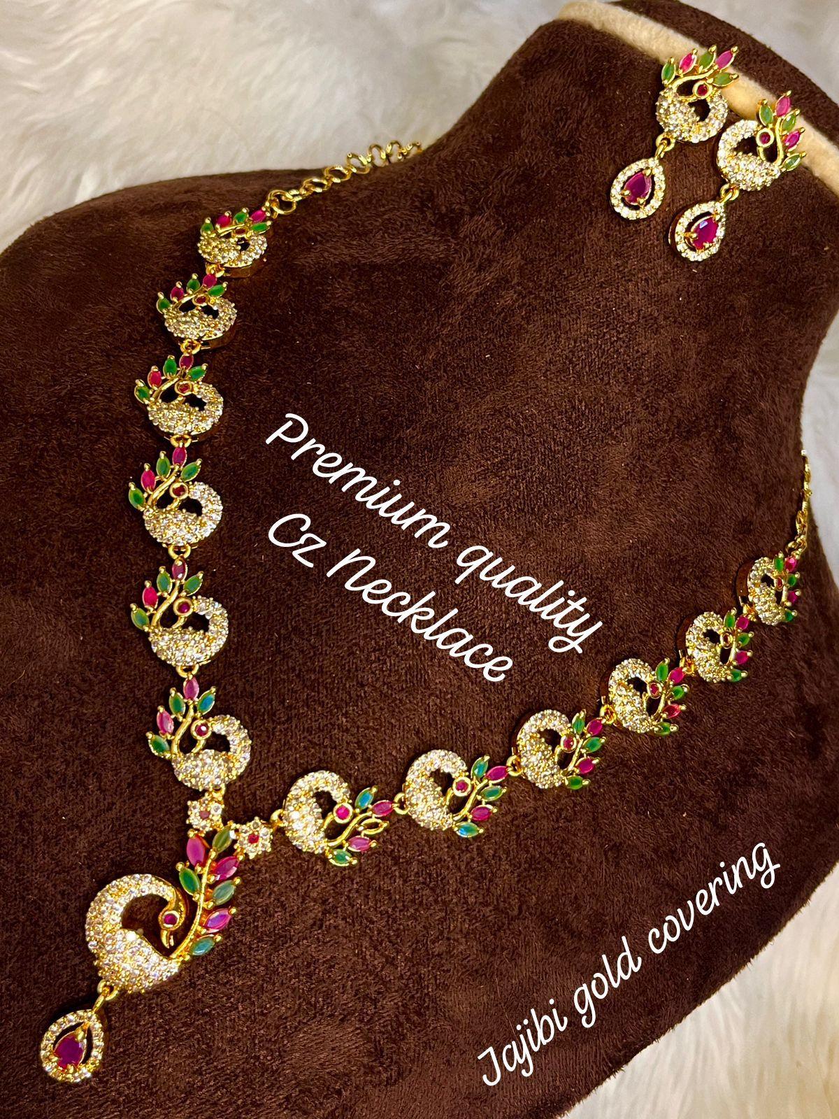 Peacock locket Cz Necklace